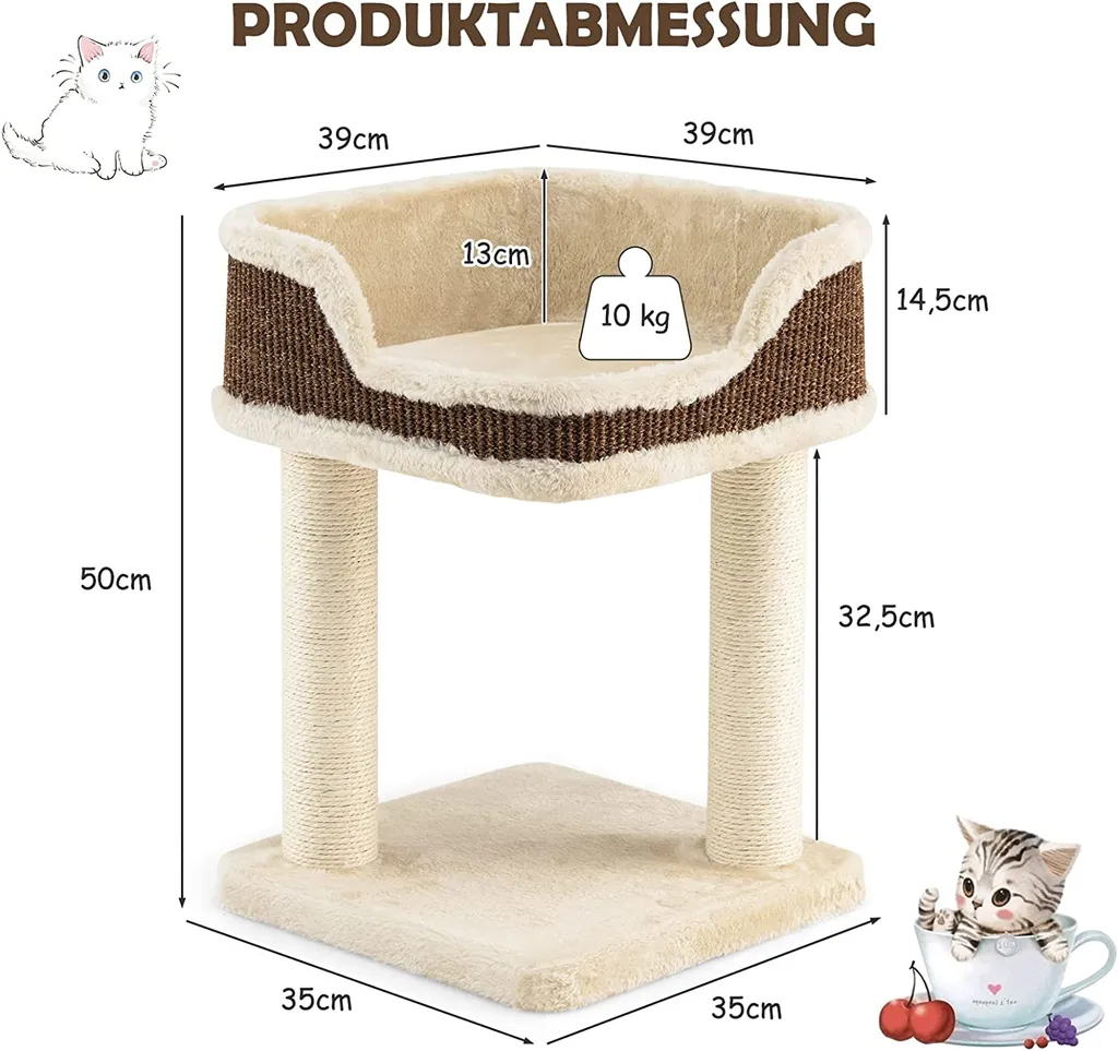 COSTWAY Kratzbaum Klein 50cm, Katzenbaum Mit Großem Plüschsitz & Kratzpfosten, Katzenkratzbaum Holz, Katzen Katzenmöbel Kletterbaum, Beige