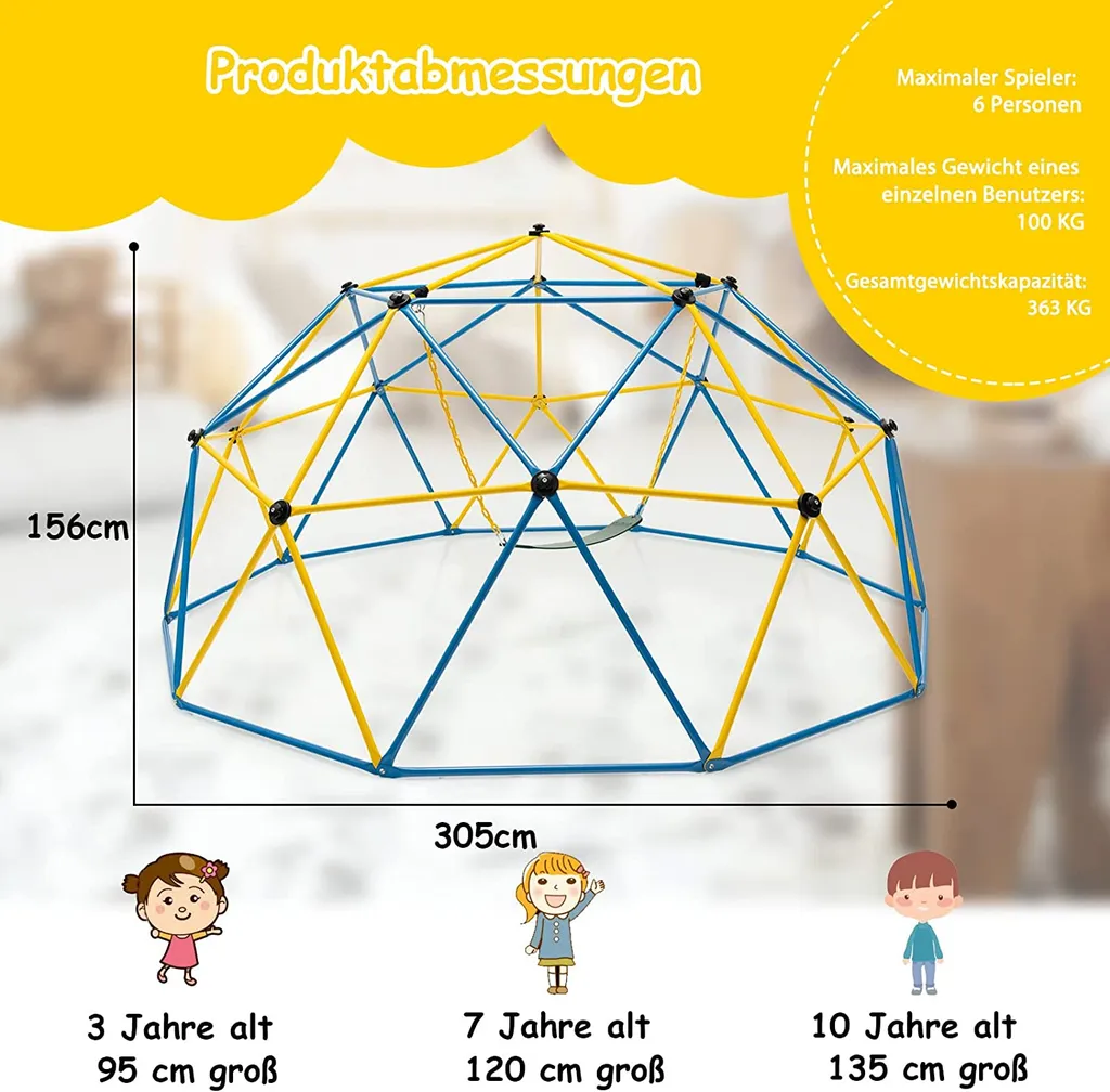 COSTWAY Ø 305cm Kletterkuppel Mit Schaukel, Klettergerüst In Kuppelform, Indoor-/Outdoor-Spielgerät, Kletterleiter Für Kinder Von 3 Bis 10 Jahren, Ideal Für Hinterhof, Garten, 363 Kg Belastbar