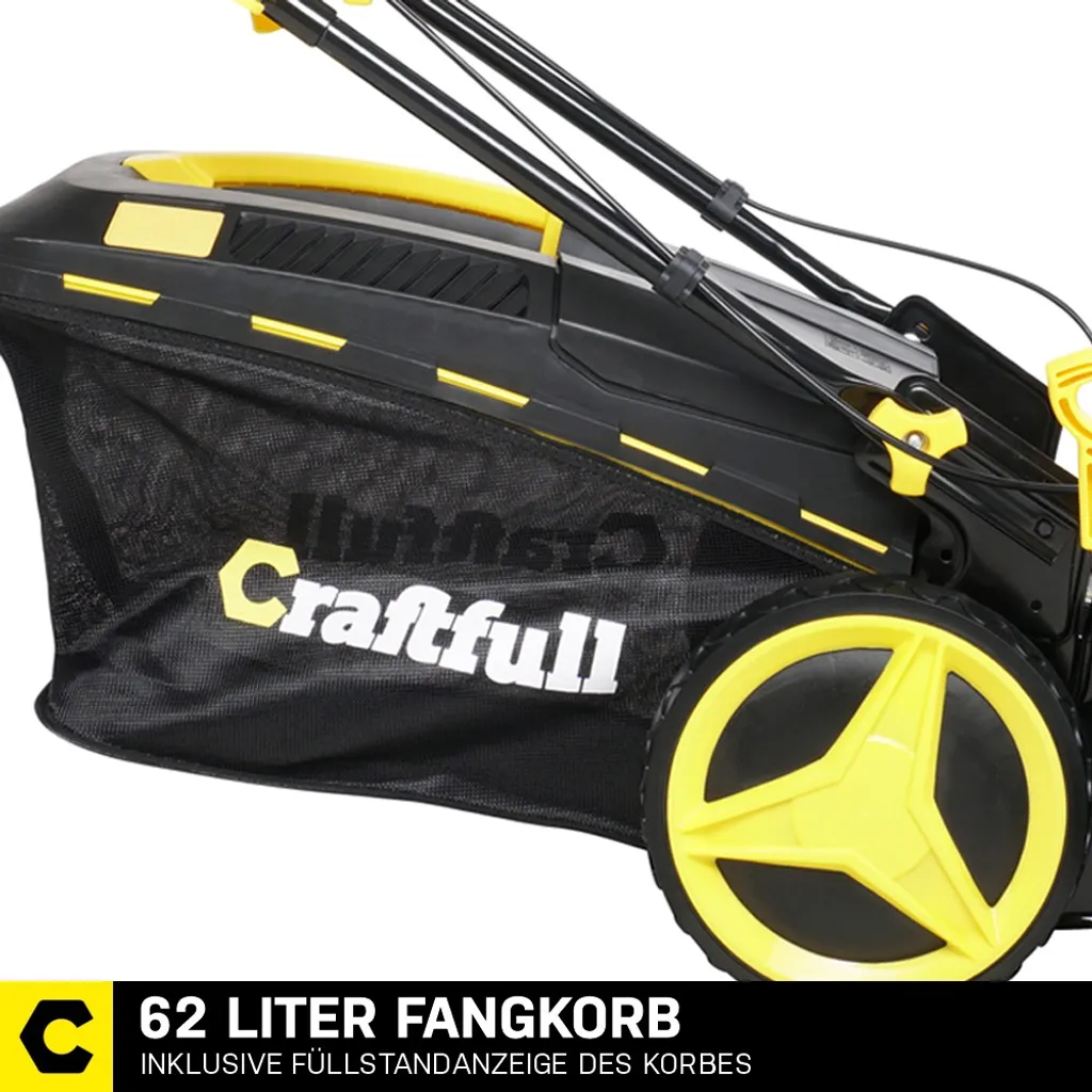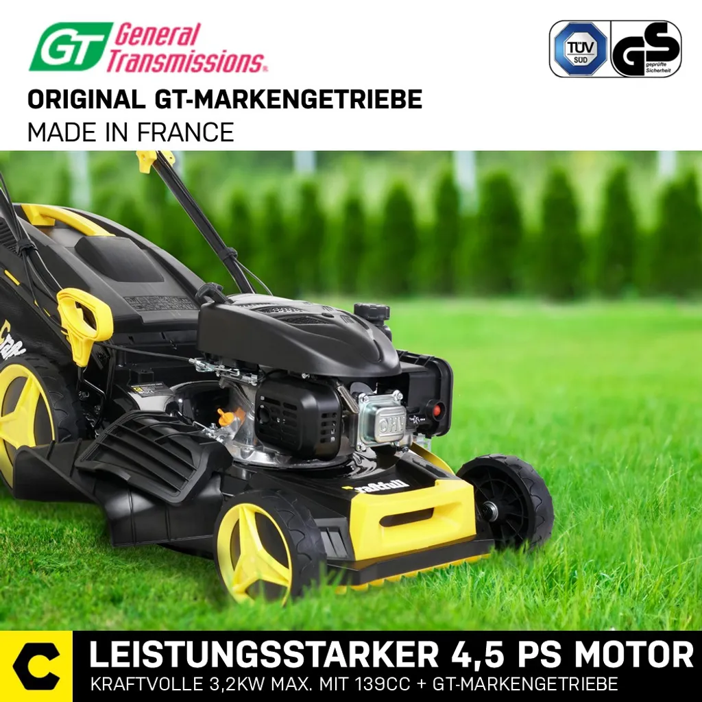 Craftfull Benzinrasenmäher CR-139-20, 46 Cm Schnittbreite, Benzin Rasenmäher Mit Radantrieb Inkl. Rasenkamm, 139cc, 3,2 KW / 4,5PS, Euro 5 Norm, 5in1, Marken Motor, GT-Markengetriebe, 8 Stufen Höhenverstellbar, 62 Liter Fangsack, Easy-Clean-Funktion