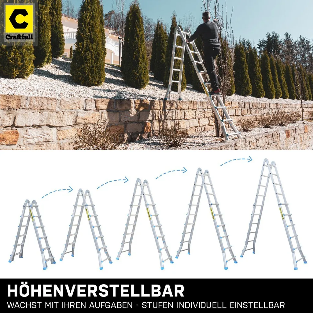 Craftfull Mehrzweckleiter – Teleskopleiter CF-105A – Leiter – Multifunktionsleiter – Aluleiter – Klappleiter – 5.10 Meter (4×5 Sprossen)
