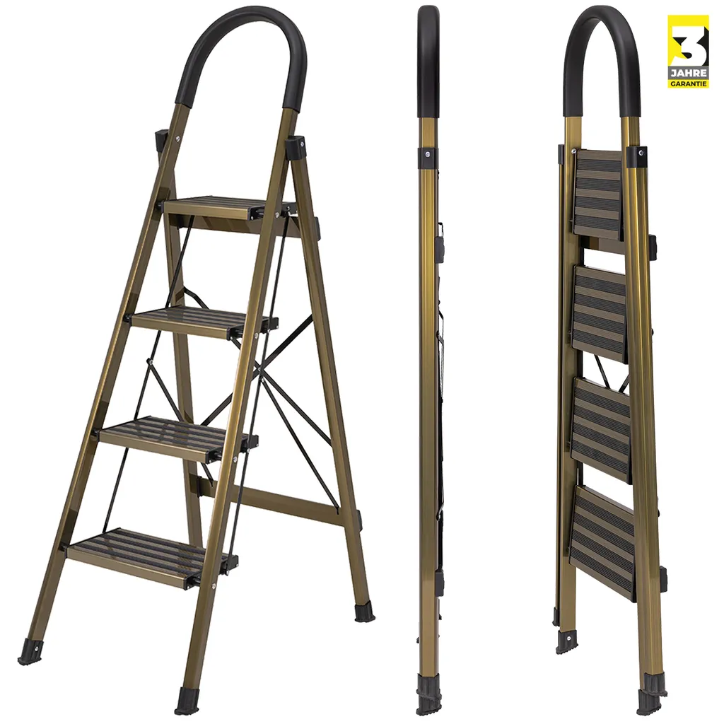 Craftfull Stehleiter CF-134A Champagner Edition Klappleiter 4 Stufen, Gummierte Standfüße, Alu Leiter Aluminiumleiter Aluleiter Mehrzweckleiter Multifunktionsleiter Haushaltsleiter Leiter