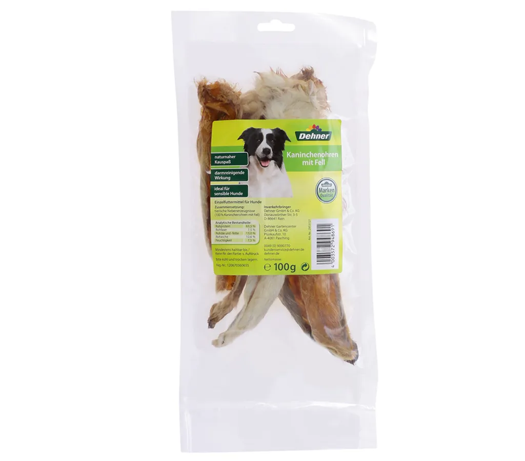 Dehner Hundesnack, Kaninchenohren Mit Fell, 5 X 100 G (500 G)