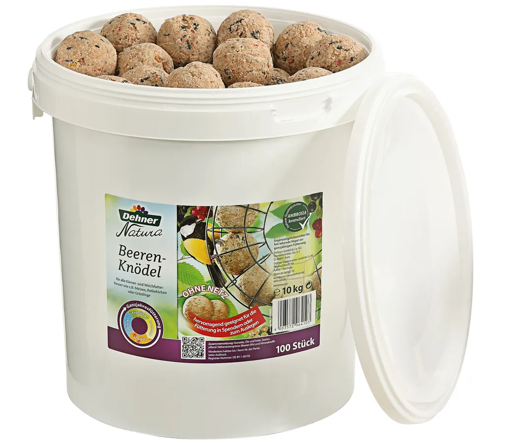 Dehner Natura Wildvogelfutter, Große Beeren-Knödel, Ohne Netz, 100 Stück Je 100 Gramm (10 Kg)