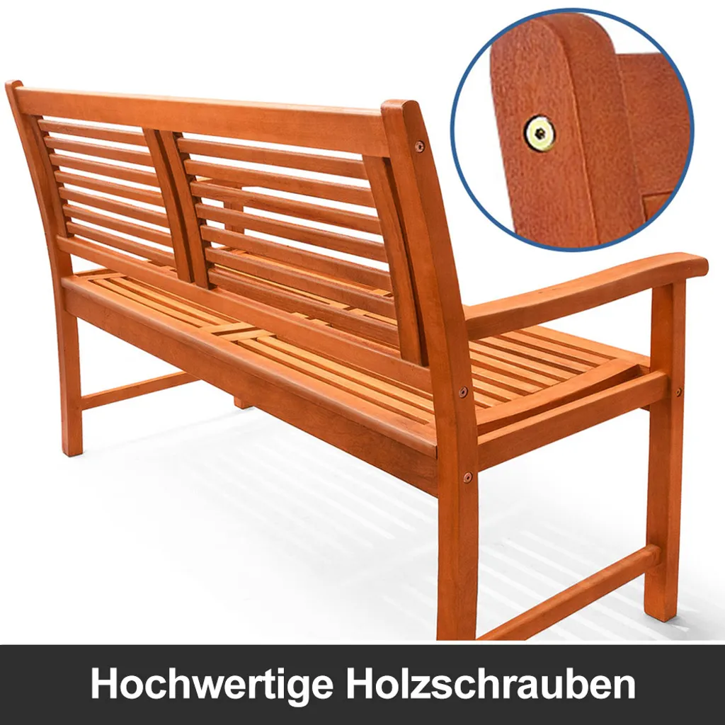 Deuba Gartenbank Bologna 2-Sitzer L 120 X T 60 X H 90 Cm,Eukalyptusholz, Bis 320 Kg Belastbar, Naturbelassen