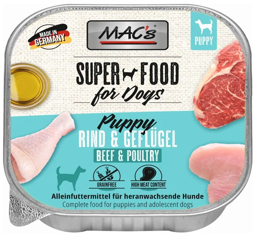 Deuba MAC’s Dog ¦ Puppy ¦ Geflügel – Herz & Leber – 11 X 150g ¦ Nasses Hundefutter Für Welpen In Schälchen
