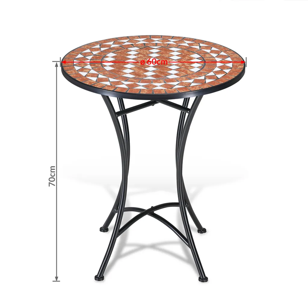 Deuba Mosaik Sitzgruppe 3 Teilig Set Metall 60 Cm 2 Stühle Klappbar Garten Balkon Terrasse Tisch Gartenmöbel Balkonmöbel