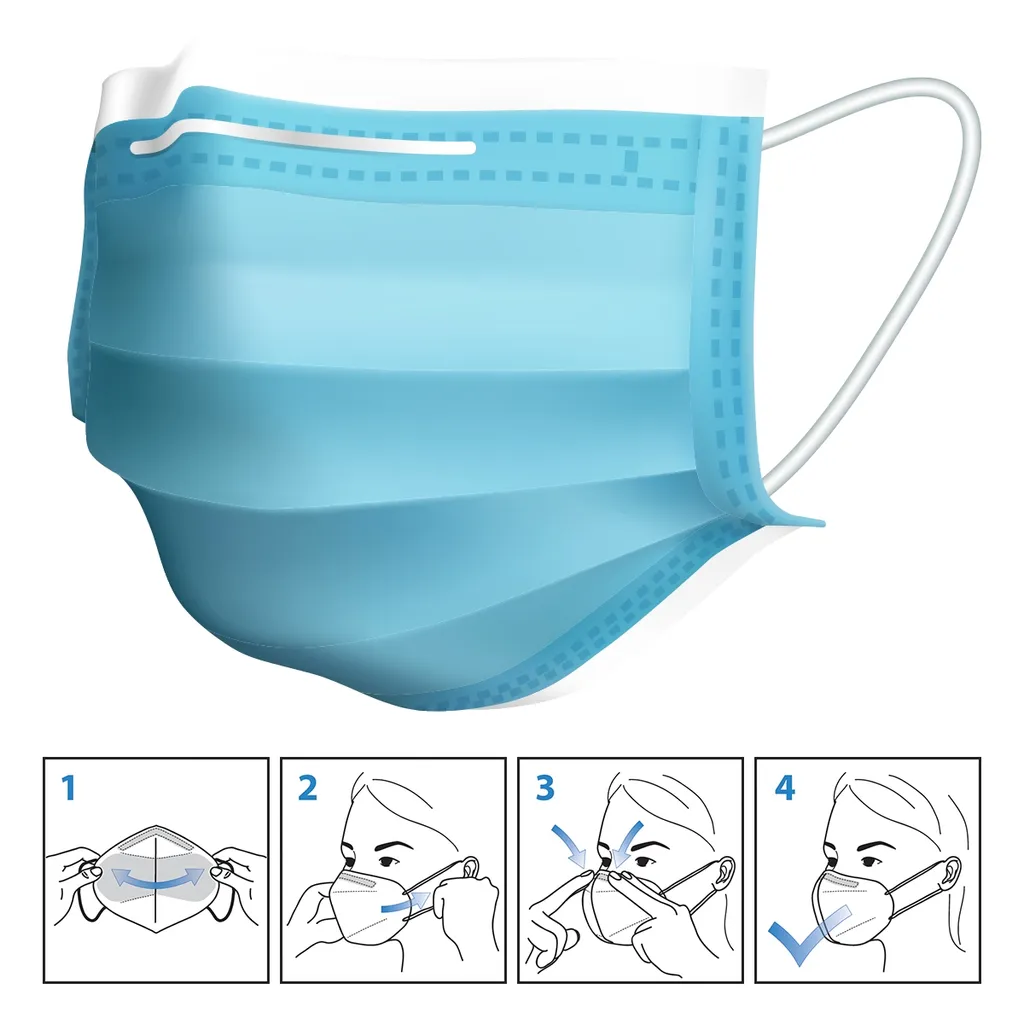 ECD Germany 50 Stück Mundschutz Maske Einweg Gesichtsmaske Für Erwacösene Blau 3-lagig Schutz Atmungsaktive Mundschutzmaske Mit Ohrschlaufen Und Nösenbügel Mund-Nösen-Schutz Schutzmaske Einwegmaske