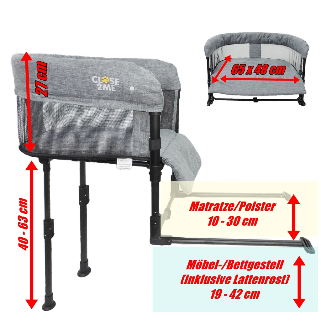 Eichhorn Kinderwagen Close2Me HAPPY – Mittelgroßes Beistellbett Für Haustiere Bis 12 Kg, Inklusive Auflagepad Mit Kuschelrand
