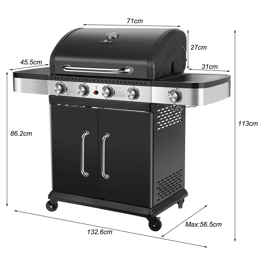 El Fuego Gasgrill / Grillwagen Burlington 4 Brenner +1 Seitenbrenner, Grillfäche 70x42cm