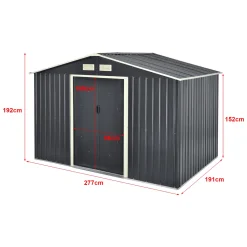 En.casa Gartenschuppen 277x191x192cm Aus Metall Gerätehaus Dunkelgrau