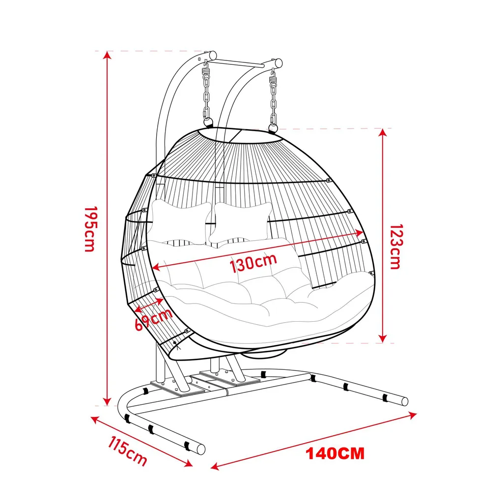 Endorphin® Hängesessel Twin | Für Zwei Personen | Inklusive Gestell Und Auflage-Polster | Sessel Für Garten, Balkon, Terrasse, Wintergarten | Hängekorb | Design-Stuhl Für Drinnen & Outdoor | XXL
