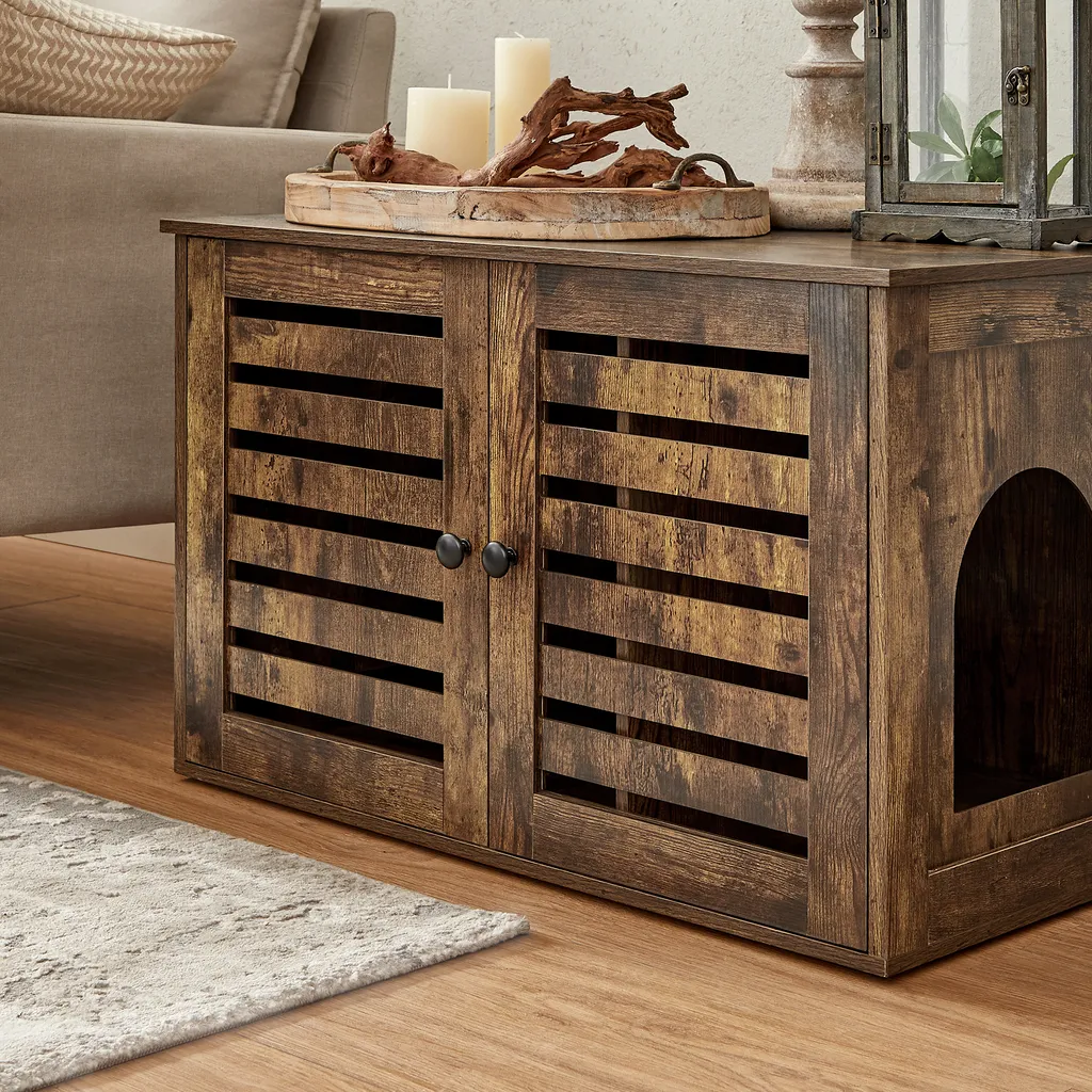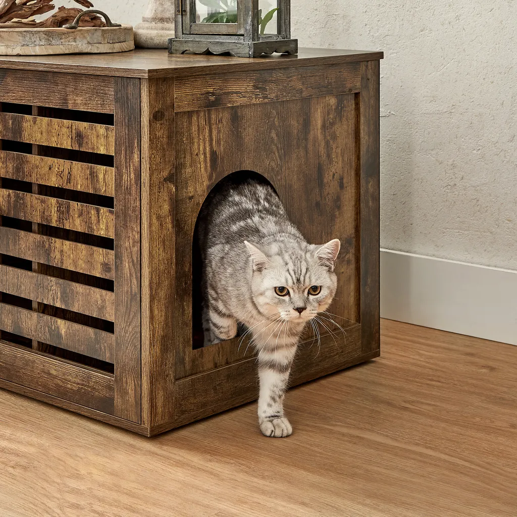 FEANDREA Katzentoilette, Katzenhaus, Stark Und Langlebig, Lamellentür, Mit Türen, Vintagebraun PCL003X01