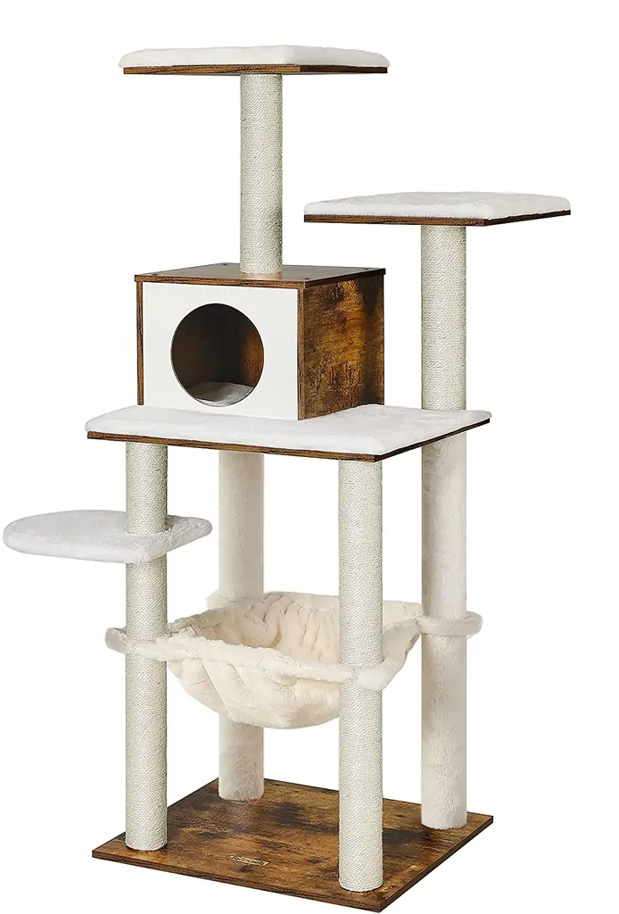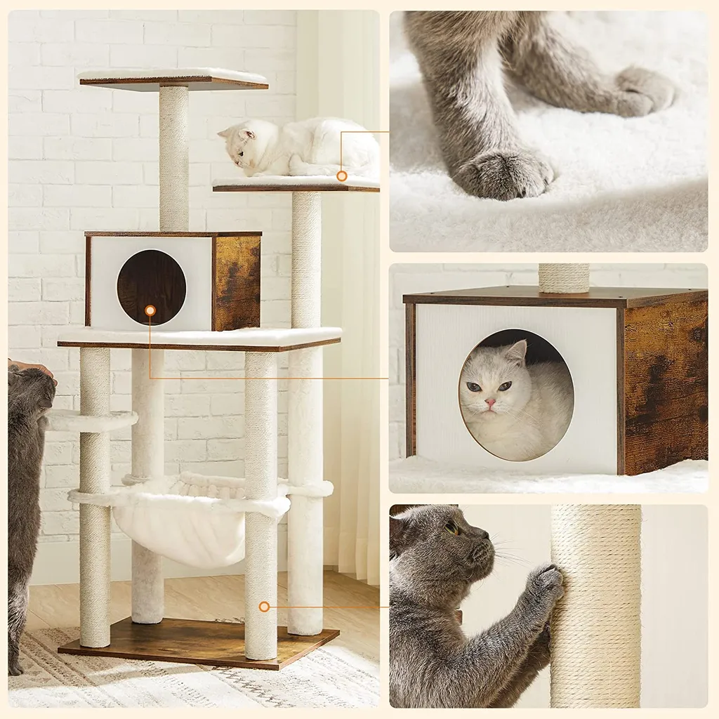 FEANDREA Kratzbaum, 500 G/m² Plüsch, 138 Cm, Leicht Reinigen, Stabilität, Katzenbaum, Katzenmöbel, Modern, Vintagebraun PCT164X01