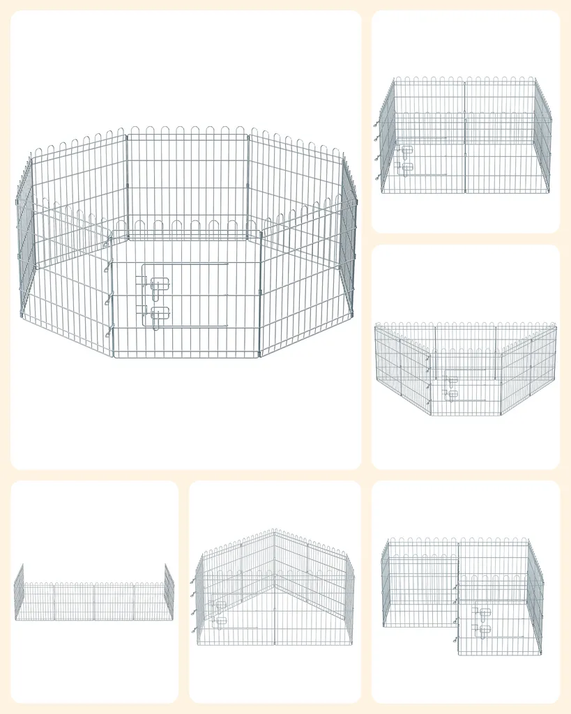FEANDREA Welpenauslauf, Freilaufgehege Kaninchen, Faltbar, Für Hund, Silbern PPK001W01
