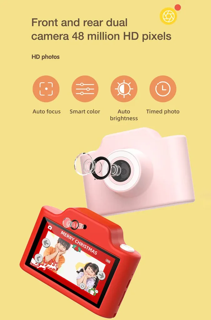 Fine Life Pro Kinderkamera Digital Kinderkamera 48MP 1080P WiFi Digitalkamera Kinder Mit 3 Zoll Berührbarem Bildschirm E 32GB TF-Karte Datenkabel-Schlüsselband Dual Kamera Geschenk Für Kinder