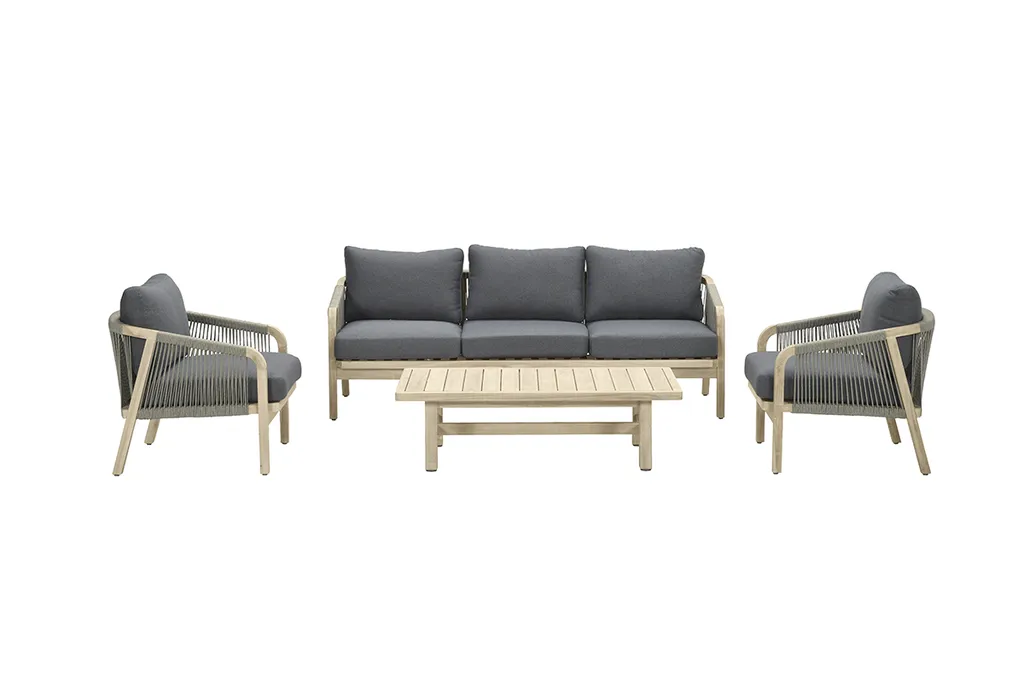 Garden Impressions Santos Lounge Set 4-teilig Akazienholz White Washed – Polster Anthrazit