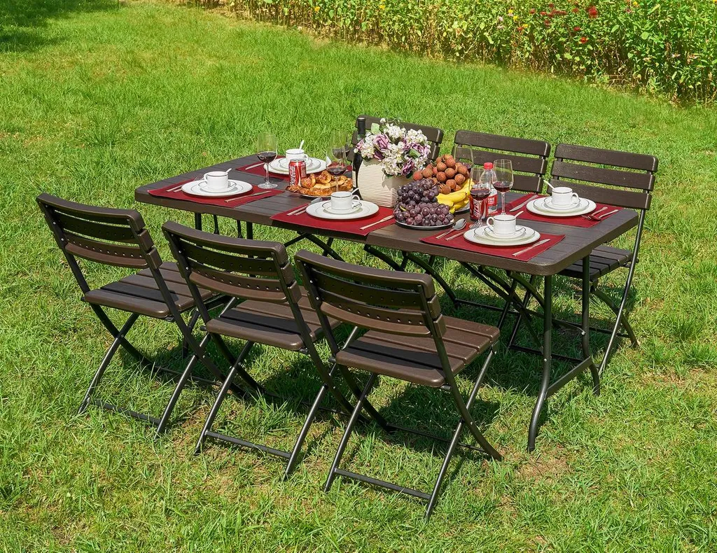 Garden Pleasure Klapptisch 180 X 74,5 X 73 Cm TABORA In Holzoptik – Klappsystem Mit Tragegriff