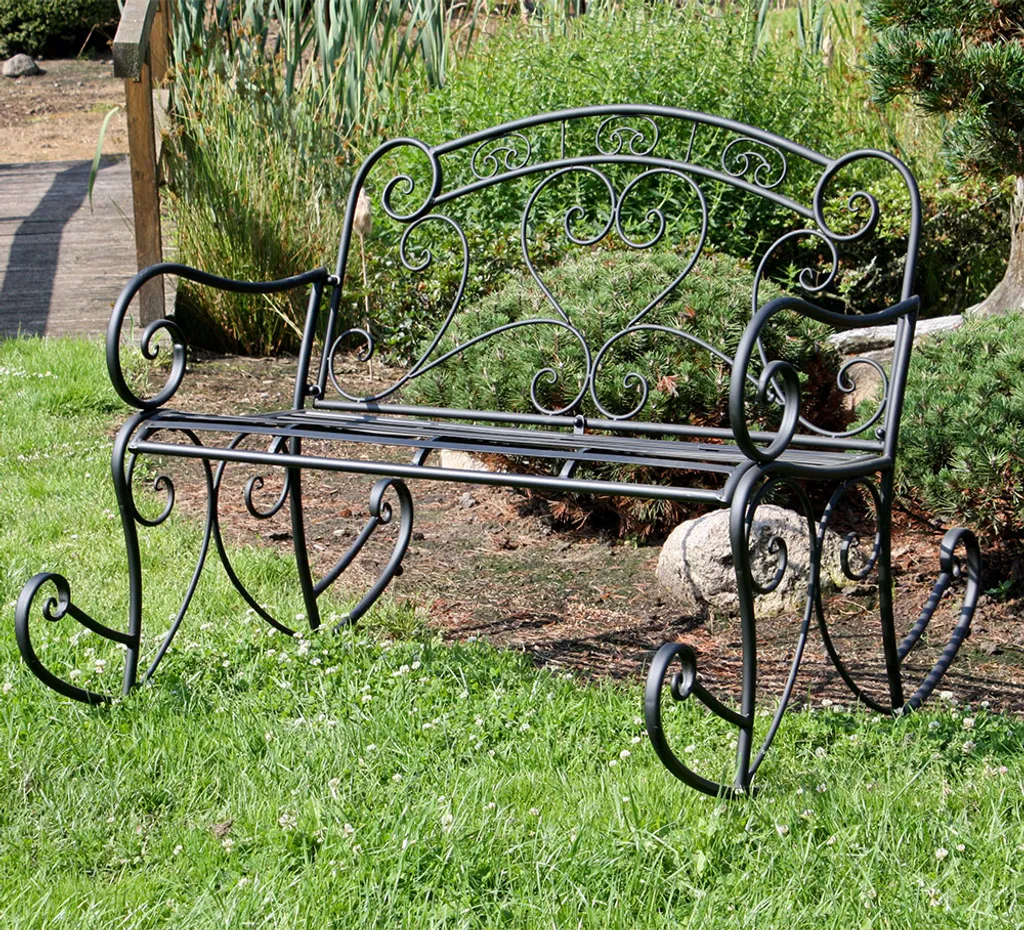 Garden Pleasure Schaukelbank Metall Gartenbank Sitzbank Parkbank Schaukelstuhl Bank Schwarz