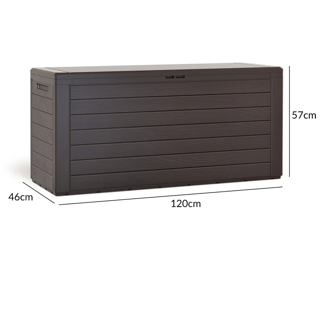 GARDENBOX Auflagenbox/Gartenbox „Woody“ H 58 X B 120 X T 46 Cm, Holz Optik, Farbe Dunkelbraun; GTS178509
