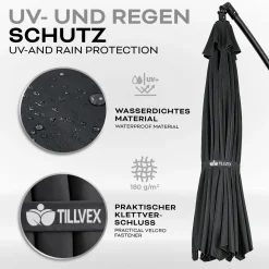 Tillvex Sonnenschirm Anthrazit Ø 3m Ampelschirm Gartenschirm Marktschirm Kurbel Balkon Alu Neigbar