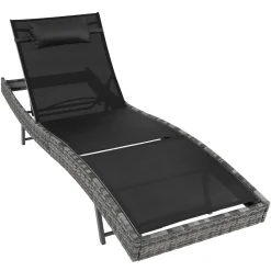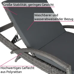Tectake Sonnenliege Rattan Delphine – Dunkelgrau
