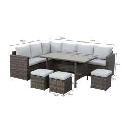 MeXo Gartenmöbel Set Polyrattan Essgruppe 7 Teile Lounge Sofa Für 6-9 Personen Mit Hocker, Wetterfest Balkonset Sitzmöbel-Set Indoor Outdoor Grau