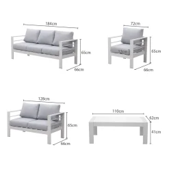 MeXo Gartenmöbelset, Loungeset Aluminium Für 6-7 Personen Mit Kissen Und Couchtisch Indoor Outdoor Balkon Weiß (Sitzgruppe, Aluminiumrahmen)