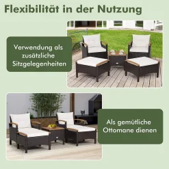 COSTWAY 5tlg. Rattan Möbelset 2 Gartensessel Mit Fußstütze & Beistelltisch Akazienholzplatte & Kissen, Gartenliege Rattanliege Für Garten, Pool, Hinterhof