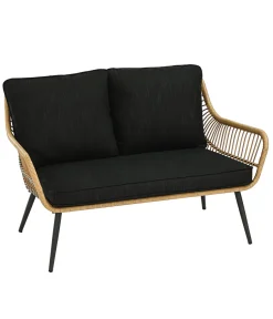 COSTWAY 4 Tlg. Terrassenmöbel Lounge- Balkon- & Garten-Set Inkl. 2 Einzelstühlen 1 Bank & 1 Couchtisch Textilene Sitzgruppe Sitzgarnitur Schwarz