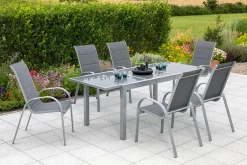Merxx Gartenmöbelset „Amalfi“ 7tlg. – Aluminiumgestell Mit Textilbespannung Grau – 50355-309