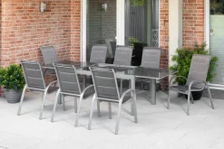Merxx Gartenmöbelset „Amalfi Di Lusso“ 9tlg. Mit Semi Ausziehtisch 180/250 X 100 Cm Mit Digitaldruckplatte – Aluminiumgestell Silber Mit Textilbespannung Anthrazit