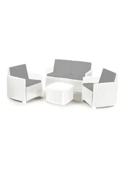 Dmora Gartenset „j“ Mit Kissen, 1 Sofa + 2 Sessel (mit Armlehnen) + 1 Outdoor-Container-Tisch, Italy, Weiß