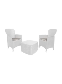 Dmora Gartenset Mit Kissen, 2 Sesseln Und 1 Outdoor-Container-Tisch, Italy, Weiße Farbe