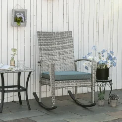 Outsunny Schaukelstuhl Schwingsessel Gartenstuhl Mit Kissen, Polyrattan+Metall, Grau, 66 X 88 X 98 Cm