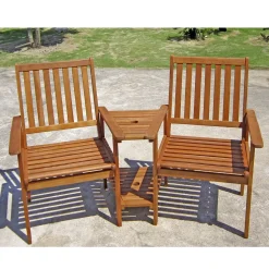 Garden Pleasure Doppelsessel EDISON Gartenstuhl Sonnenschirmvorrichtung Tisch Stuhl 2-sitzer Eukalyptus