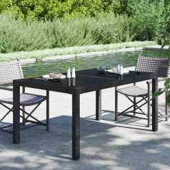 VidaXL Gartentisch 150x90x75 Cm Gehärtetes Glas Poly Rattan Schwarz