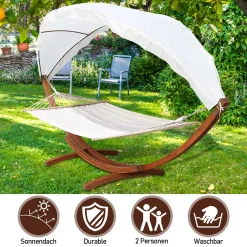 Clanmacy Haengematte Mit Gestell Und Sonnendach, Hammock Aus Wetterfestem Laerchenholz, Bis 200kg, Stabhaengematte Fuer 2 Personen Outdoor Und Indoor