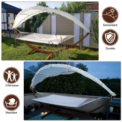 EINFEBEN Haengematte Mit Gestell Und Sonnendach, Hammock Aus Wetterfestem Laerchenholz, Bis 200kg, Stabhaengematte Fuer 2 Personen Outdoor Und Indoor