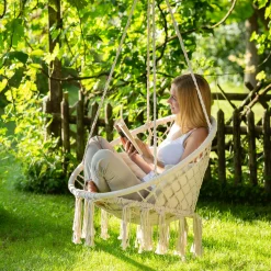 SVITA COZY Hängesessel Mit Gestell Aus Stahl Outdoor Hängekorb Beige