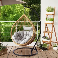 MCombo Hängesessel Hängestuhl Schaukel Korb Inkl. Gestell Hängekorb Kissen