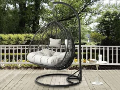 Mirjan24 Hängesessel Opam, Zweisitzer Hängekorb, Stilvoll Gartensessel Mit Stahlskelett (Farbe: Grau / Kissen: Grau)