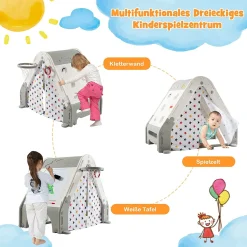 COSTWAY 5 In 1 Kletterdreieck Spielzelt, Kinderspielzelt Mit Kletterwand, Tafel Zum Malen, Basketballkorb, Fußballtor Und Ringen, Indoor Klettergerüst Spielzeug, Multifunktionales Kletterspielzeug