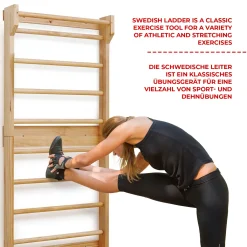 Physionics® Sprossenwand Aus Holz – Für Kinder Und Erwachsene, 195x80x14cm,100kg Max- Kletterwand, Turnwand, Klettergerüst