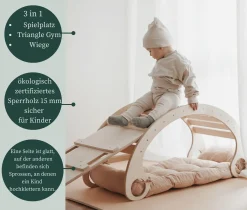Pinczo XXL Kletterbogen Mit Rutsche Und Kletterbrett – Indoor Bogenwippe Klettergerüst Für Kinder I Handgemachtes Kletterdreieck Und Montessori Schaukel I Wippe 100x40x50