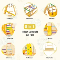 COSTWAY Kletterdreieck Klappbar Klettergerüst Holz Mit Leiter Zur Entwicklung Grobmotorischer Fähigkeiten Für Kleinkinder Ab 3 Jahren Mehrfarbig