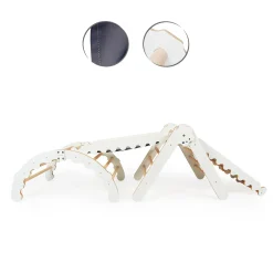 MAMOI® Klettergerüst Indoor, Kletterdreieck Mit Rutsche Aus Holz, Kletterbogen, Baby Kinder Klettern, Regenbogenwippe Mit Rutschbrett, Mini Holzbogen Triangle Für Spielplatz Ab 1/2/3 Jahre