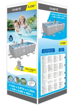 Avenli® Frame Rectangular Pool Set 400 X 207 X 122 Cm, Aufstellpool, Reckteckig, Mit Pumpe, Grau