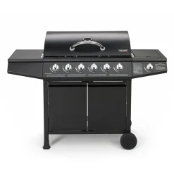 TAINO BASIC 6+1 Gasgrill Mit Seitenbrenner 6 Brenner Edelstahl-Brenner Grillwagen BBQ Schwarz