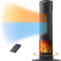 ZENEZ Keramischer Turm-Raumheizer Mit Massivholz-Set, Design Mit Fernbedienung.