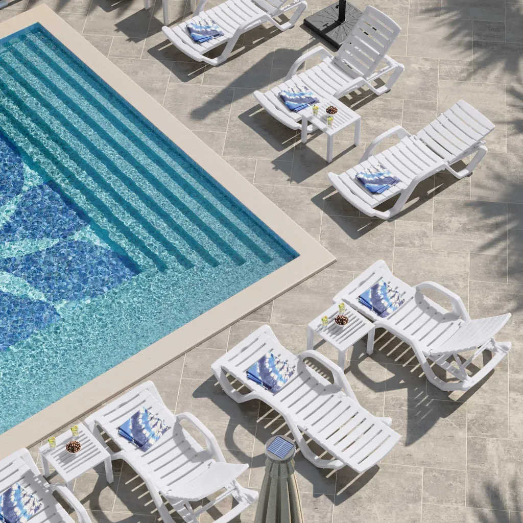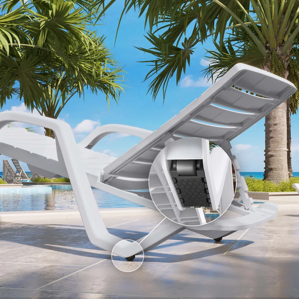 GGM Moebel International 2er-Set HAWAI | Sonnenliege | Kunststoff | +Arm | Weiß | Stapelbar | Strandliege, Bäderliege, Poolliege